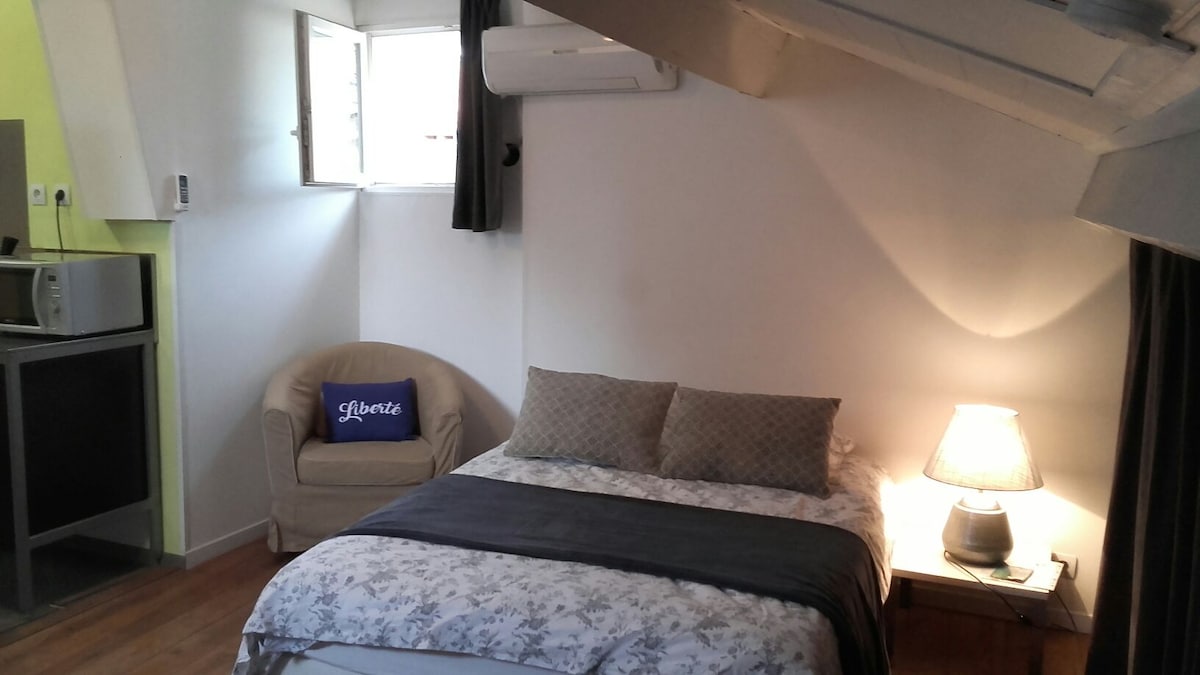 Welcome to a cozy nest in the historic center of Arles! Studio just renovated for your comfort while respecting the charm and history of this apartment in the old center. In the heart of a pedestrian street, an old door welcomes you, let yourself be guided to the 1st floor by a marble spiral staircase from the early 19th century. Ideal location, close to the city's main monuments, open the door and immerse yourself in the alleys of the old center :)