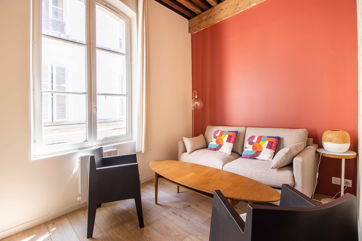 Appartement de 65 m² entièrement rénové dans un hôtel particulier rue du Cloître. Ces deux chambres spacieuses disposent chacune d'une douche ou d'une baignoire. Sa cuisine totalement ouverte sur le salon a été pensé pour recevoir et partager de bons moments. Vous ne pouvez pas être plus au coeur de la ville , vous êtes à deux pas de la place de la République !!!