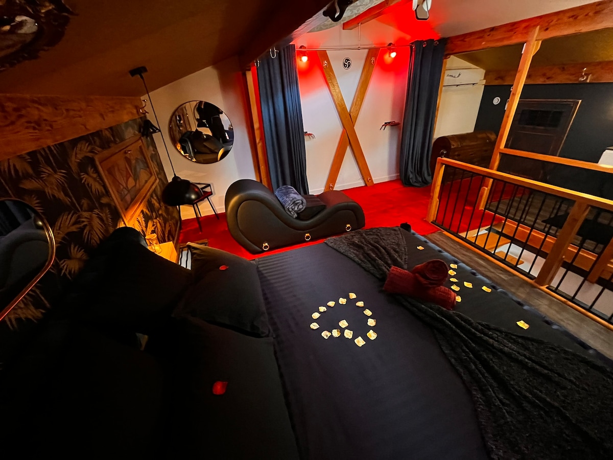 Au détour d'un court sentier que vous parcourrez à pied, enjambez le ruisseau sur le pont de bois et venez vous octroyer un moment de pure détente au sein de cette charmante cabane en bois de 50 m2 nichée sous les arbres au calme entourée de prairies. Appréciez la sérénité de la nature environnante tout en bénéficiant de tout le confort d'une grande suite. Ambiance cocooning rétro. Jacuzzi Lit 200x200 Clim Douche Machine à expresso Bouilloire Mini Réfrigérateur Micro-ondes Coin lecture.