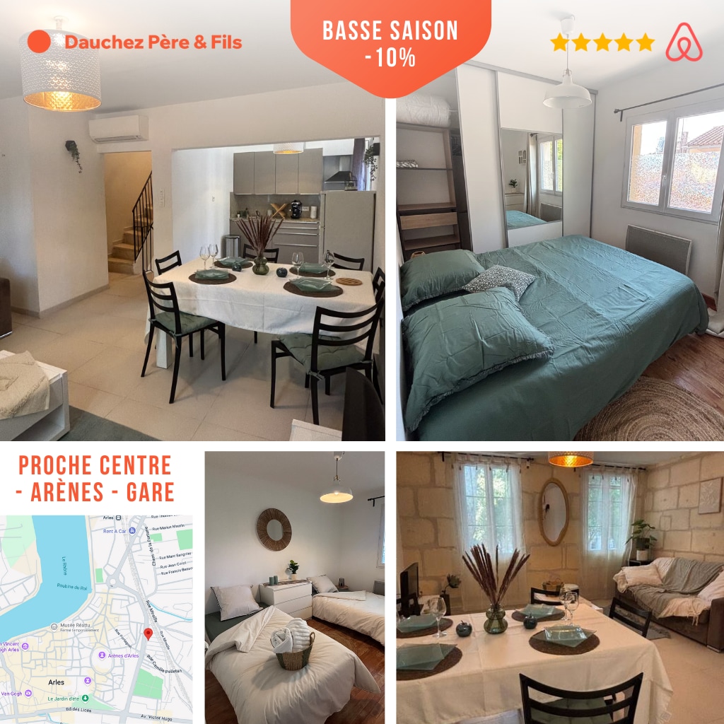 Nous vous accueillons dans notre charmante maison à deux pas du centre ancien d'Arles ! Dans une ruelle calme, cette maison sur deux étages a été entièrement rénovée et propose tous les équipements nécessaires à votre confort. À votre disposition : wifi (fibre), télé, parking, ventilateurs, machine à café, bouilloire, draps et serviettes (venant d'une blanchisserie), lave linge... N° enregistrement :1300400149527