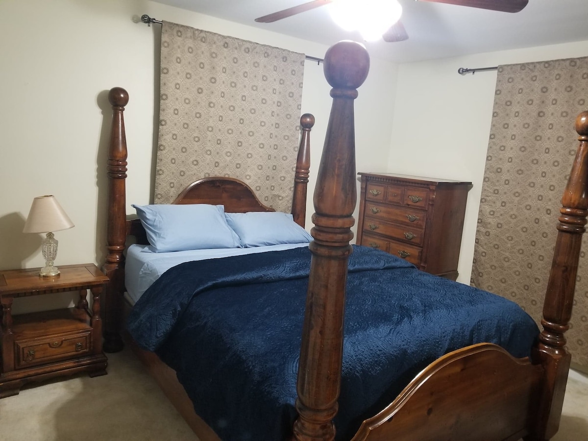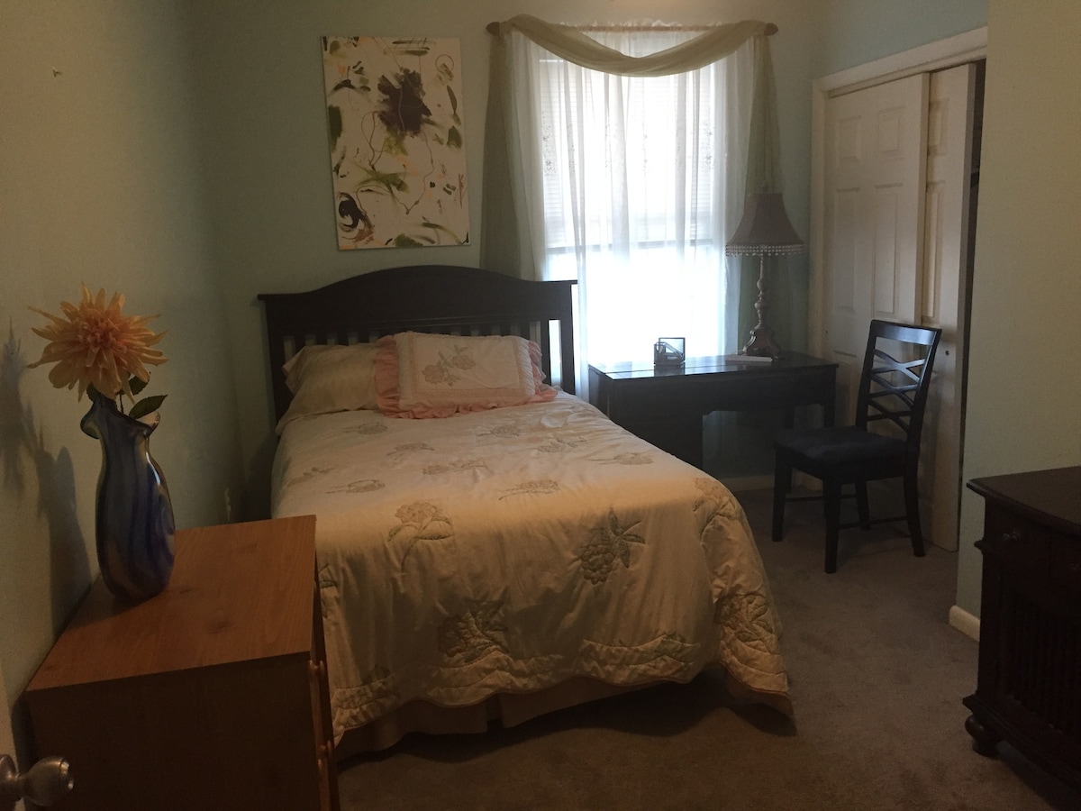 Beautiful new lower level "Zen" guest studio with all the comforts of home. New queen size super comfortable bed. Soothing light aqua blue walls, brand new kitchenette with full set of dishes, glassware, silverware, coffee maker, full size fridge, dishwasher, microwave, counter top convection oven/toaster, George Foreman grill, Induction burner stove top, Netflix, immaculate.