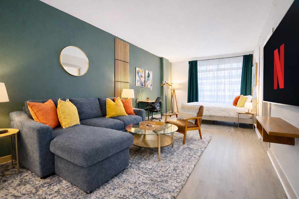 时尚特大双人床1卧公寓,近地铁站和公园•开市价超市•靠近华盛顿特区/地铁站/商场
