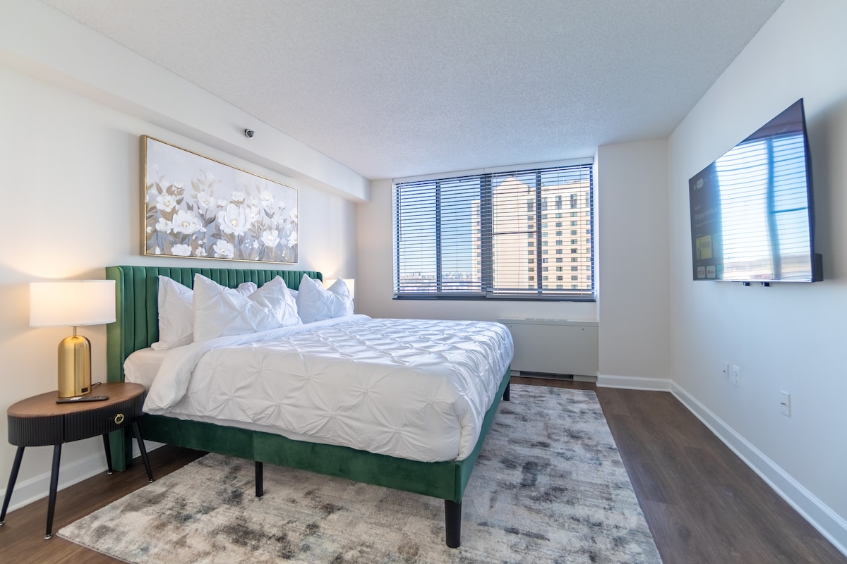 ✨Enjoy a relaxing experience located minutes away from DC, Amazon HQ, and surrounded by popular restaurants and Mall. Our stylish home has a dreamcloud like king-size bed, working space, fast free Wi-Fi, and paid on-site garage parking. With all its amenities along with in-unit laundry for an extended stay, you'll feel right at home, Our home is: ❤ in front of Met park ❤ 2 min walk to Whole Foods ❤ 4 min walk to Metro ❤ 5 min from Reagan National Airport (DCA) ❤ 6 min to National Mall/Museums