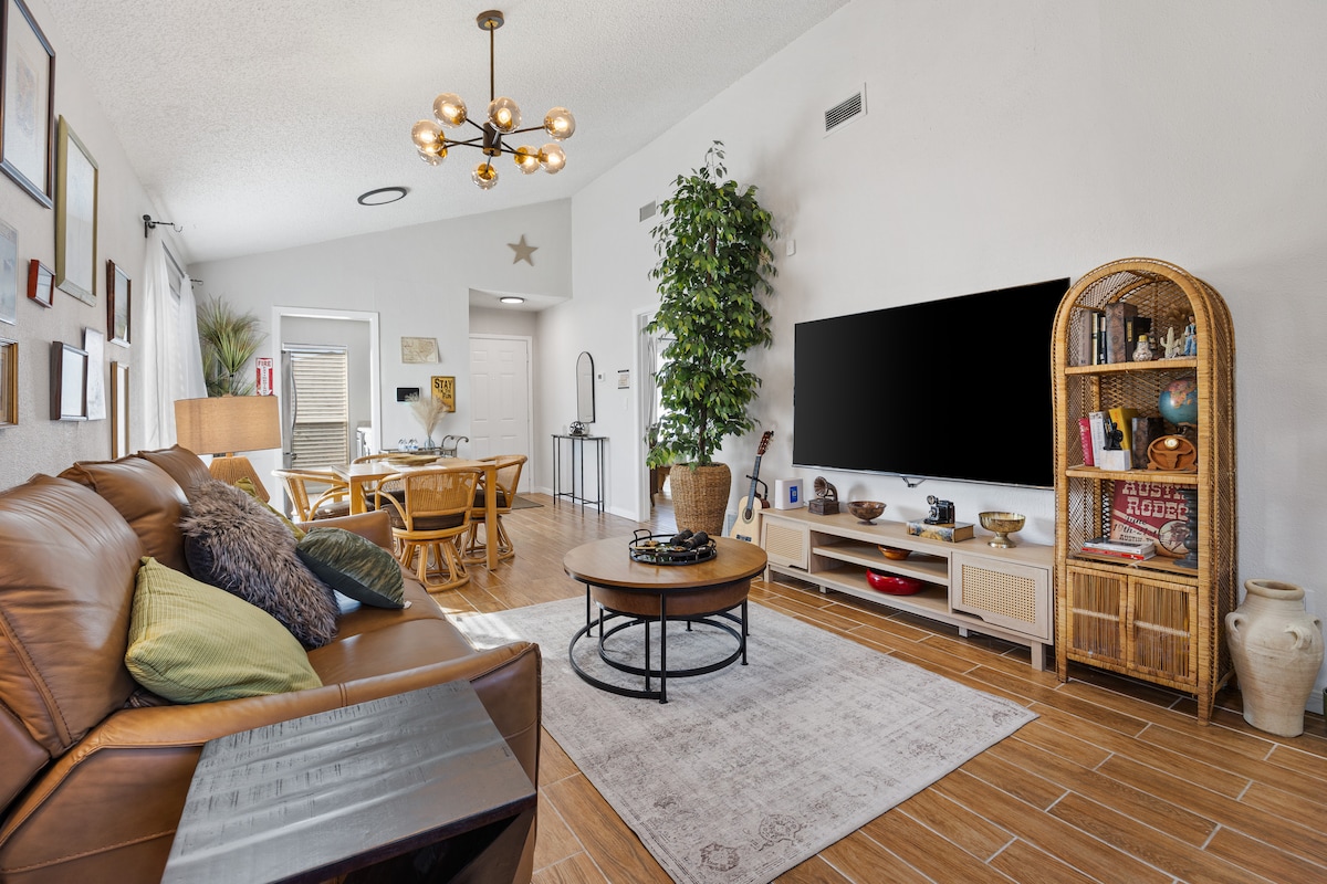 ✨Cozy Getaway! Comfortable, decorated space. Thoughtful touches for a relaxing stay Prime Location 📍 In Downtown Arlington, central to Dallas/Fort Worth Walk to Entertainment 🏟️ Walk to: AT&T Stadium, Globe Life Field, Texas Live! Minutes from Fun 🎢 Minutes from: Six Flags, Hurricane Harbor, Epic Central Local Flavors 🍔☕ Surrounded by awesome local spots: breweries, coffee, BBQ, arcades Perfect for Any Occasion 🎉 Ideal for game day/weekend escape in Arlington's entertainment district!