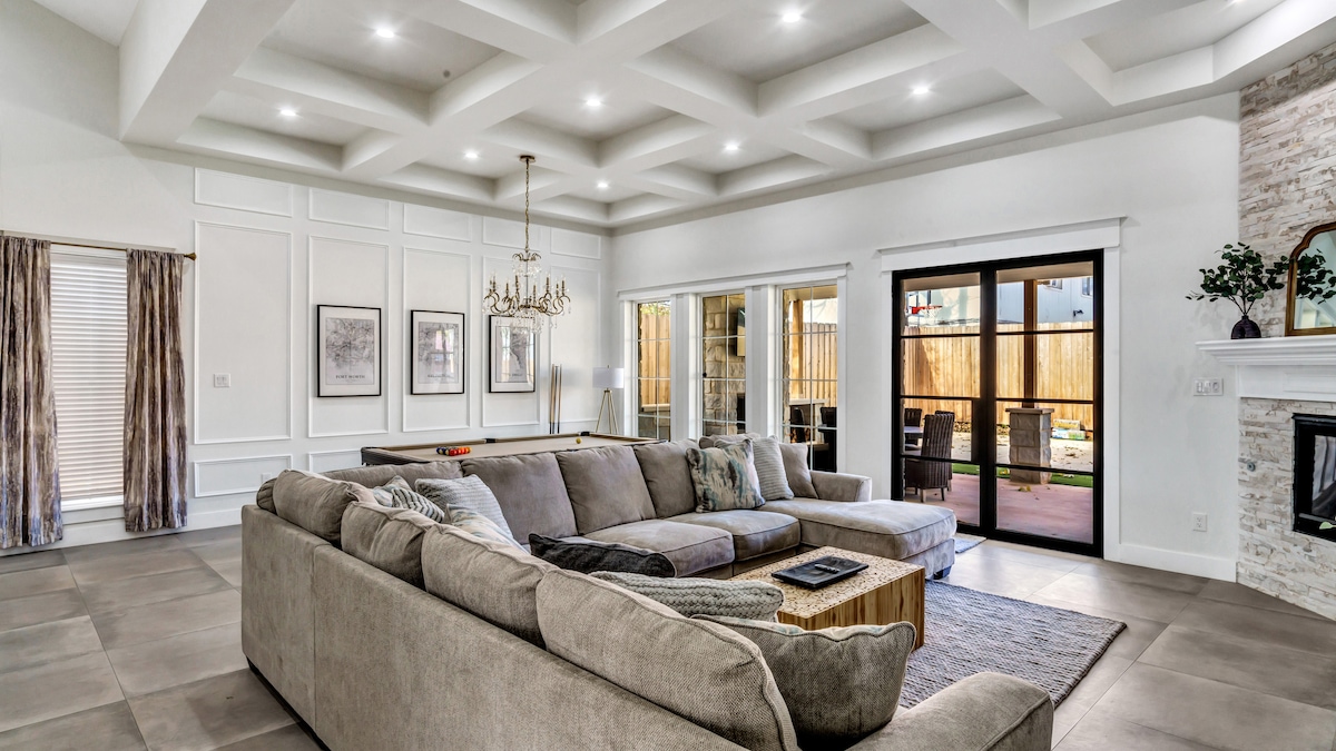 What you’ll ❤️ about your stay: - Centrally-located in the heart of Arlington - Within minutes of AT&T Stadium, Texas LIVE, Globe Life Field, Six Flags, Hurricane Harbor, University of Texas at Arlington, Billy Bob's of TX, Famous Stockyards of Fort Worth, & DFW Airport - 19 min walk to AT&T Stadium - Walking distance to shops, restaurants, & bars - Fire Pit/Grill/Outdoor Dining - Fully equipped Kitchen (pods/coffee provided) - High Speed Internet - (3) Smart TVs - Full-Size Washer & Dryer