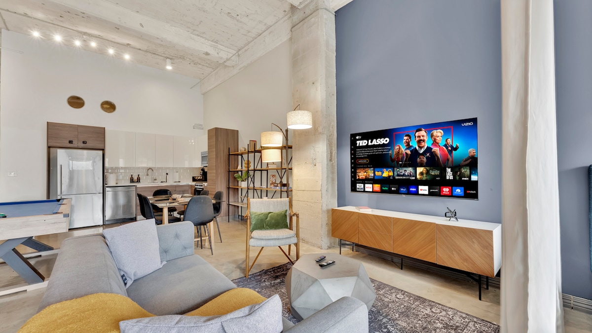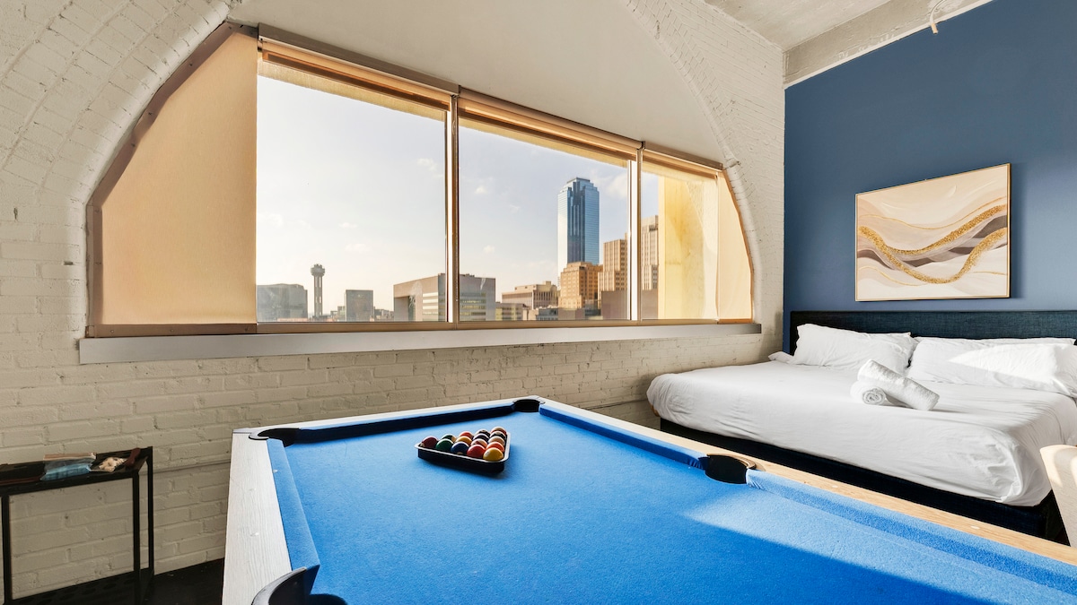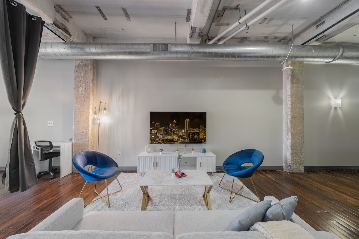 Bright, modern industrial loft in the heart of Downtown Dallas, perfect for up to 5 guests. Steps from the Kay Bailey Hutchison Convention Center, this urban retreat features 2 king beds, a fully equipped kitchen, and free parking. Ideal for business travelers, convention-goers, and city explorers seeking a stylish and convenient stay with fantastic building amenities like a pool and gym.