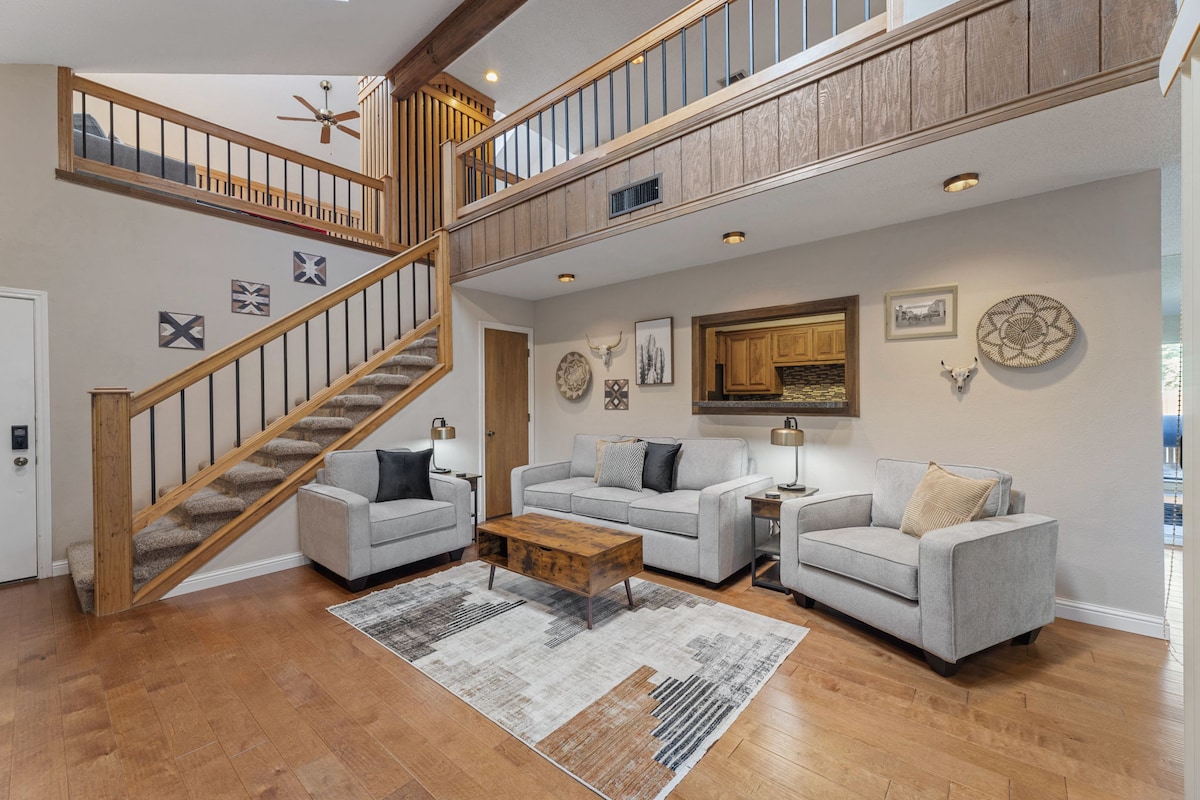 Located just 10 miles from AT&T Stadium, Sun Down Social is your elevated Texas hangout made for good vibes and great company. Enjoy the pool and hot tub, cozy fire pit chats, and movies under the stars. Inside: smart TVs in every room, a stocked kitchen, and comfy beds. The game room steals the show with pool, shuffleboard, arcade games, karaoke, and a bar. Whether you're relaxing or ready to turn up the fun, this stay has it all.