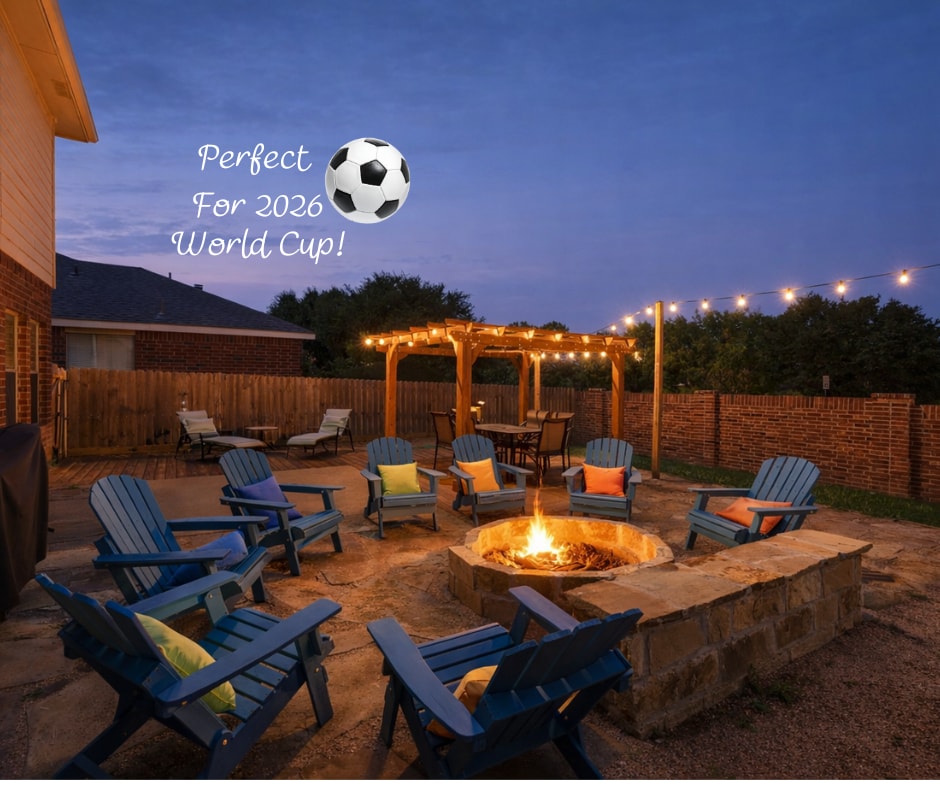 Your ultimate Arlington getaway—built for game days, FIFA 2026, large groups, and unforgettable weekends. 📍 Location • Walk to AT&T Stadium - avoid traffic & parking | 25 mins • Globe Life Field – 6 min • Texas Live! – 10 min • Six Flags – 10 min ⚽ Backyard Experience • Full-size pickleball + basketball court • Turf soccer field + putt-putt • XL outdoor movie screen • Fire pit + outdoor dining • Inflatable hot tub