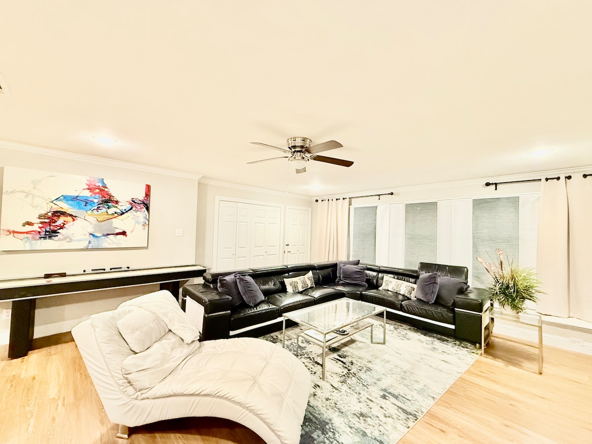 加大双人床-泳池、游戏室,距离体育场仅几分钟车程!