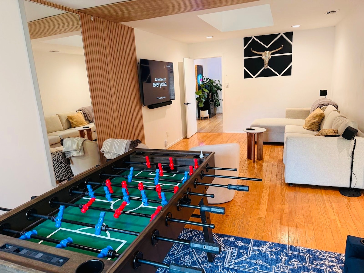 NEARBY 🔸 10 minute walk to AT&T Stadium, Globe Life Field, Choctaw Stadium, Texas Live! & Esports Stadium Arlington 🔸 5 minute drive to UT Arlington, Six Flags & Hurricane Harbor 🔸 15 minute drive to DFW Airport, Fort Worth & Dallas 🔸 20 minute drive to TCU & SMU AMENITIES 🔹 Pool table 🔹 75" TV's 🔹 Basketball 🔹 Arcade games 🔹 Skee ball 🔹 Cornhole 🔹 Outdoor 55" TV & fireplace 🔹 Outdoor kitchen & dining 🔹 BBQ / flat grill / crawfish boiler 🔹 500 mbps internet 🔹 Baby-friendly items