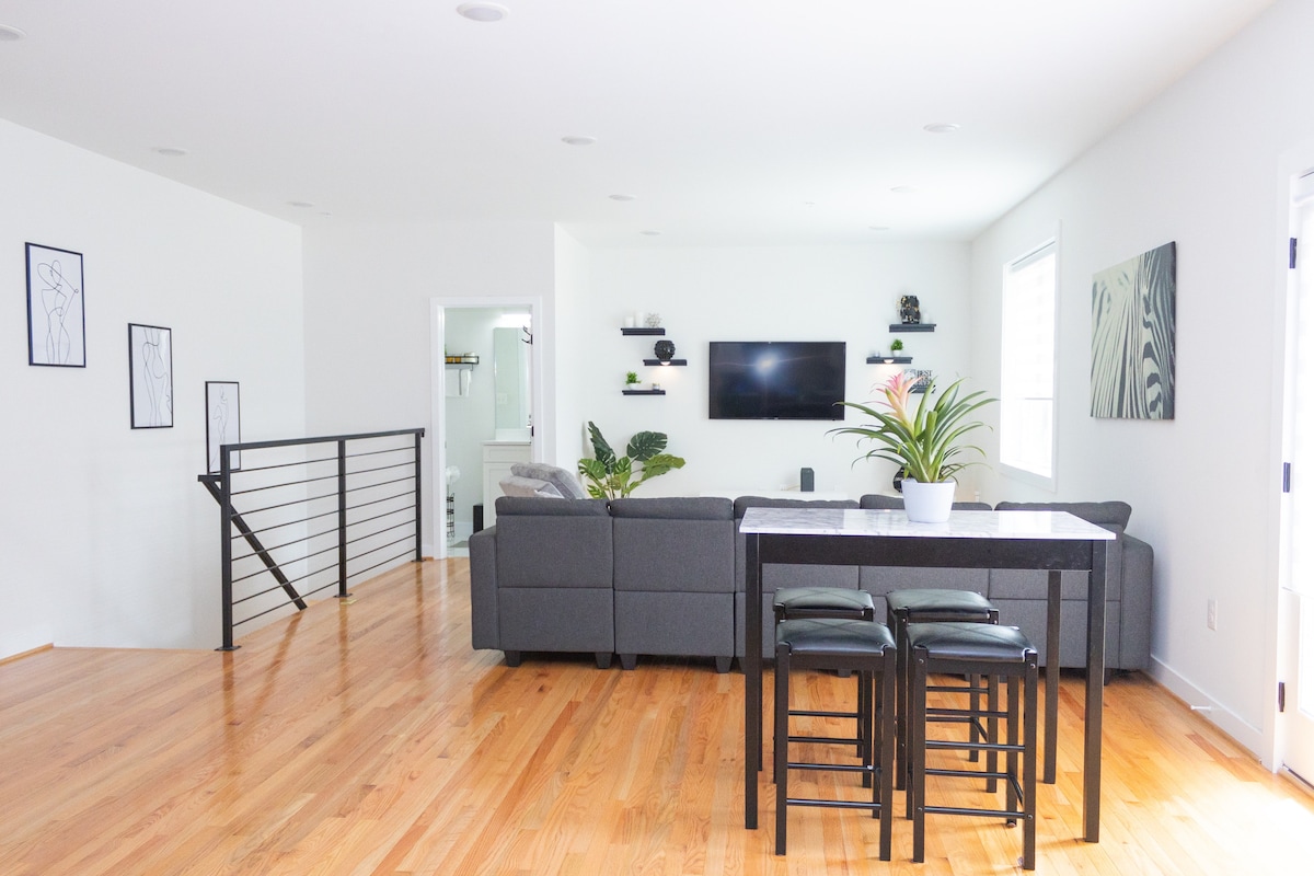 Peaceful Reston retreat with easy access to DC! This spacious 2-bedroom home features a cozy den with sofa bed and dedicated workspace, private patio, and second-floor deck. Walk to scenic lake trails and Reston Town Center for dining and entertainment. Enjoy fast Wi-Fi, a fully equipped kitchen, and comfortable spaces for families, groups, or business travelers. Just 2 minutes to the Metro and 20 minutes to DC—perfect for both relaxation and city adventures.