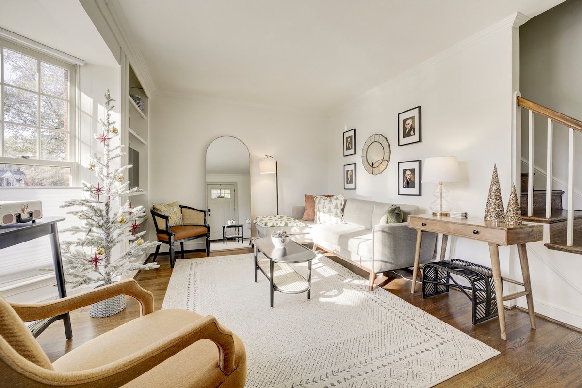This comfortable, stylish home is in a great neighborhood, central to DC, Alexandria, Arlington, and other parts of Northern Virginia. The home features three bedrooms and four beds (one king, two queens, and a day bed that can be made up as a single), 2.5 baths, a full kitchen, dining, and living rooms, plenty of natural sunlight, and a tranquil tree canopy-covered back patio. The house is the perfect oasis for travelers looking to explore the area or visit for work.