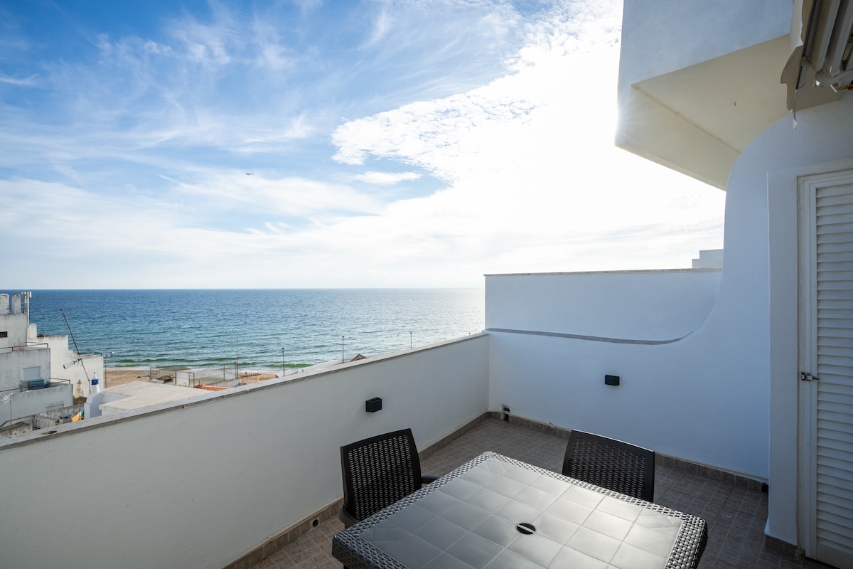 Seafront T2 apartment in the small fishing village of Armação de Pera. Great balcony with an amazing sea view. To go to the beach you just need to cross the street and enjoy the sun. With two bedrooms, one bathroom, kitchen, living room and a balcony. Very close is a travel agency where you can book a day trip to Lisbon, to the Virgin of Fátima, to Seville, to Gibraltar and other trips through the sea caves, local markets or the Algarve's interior.