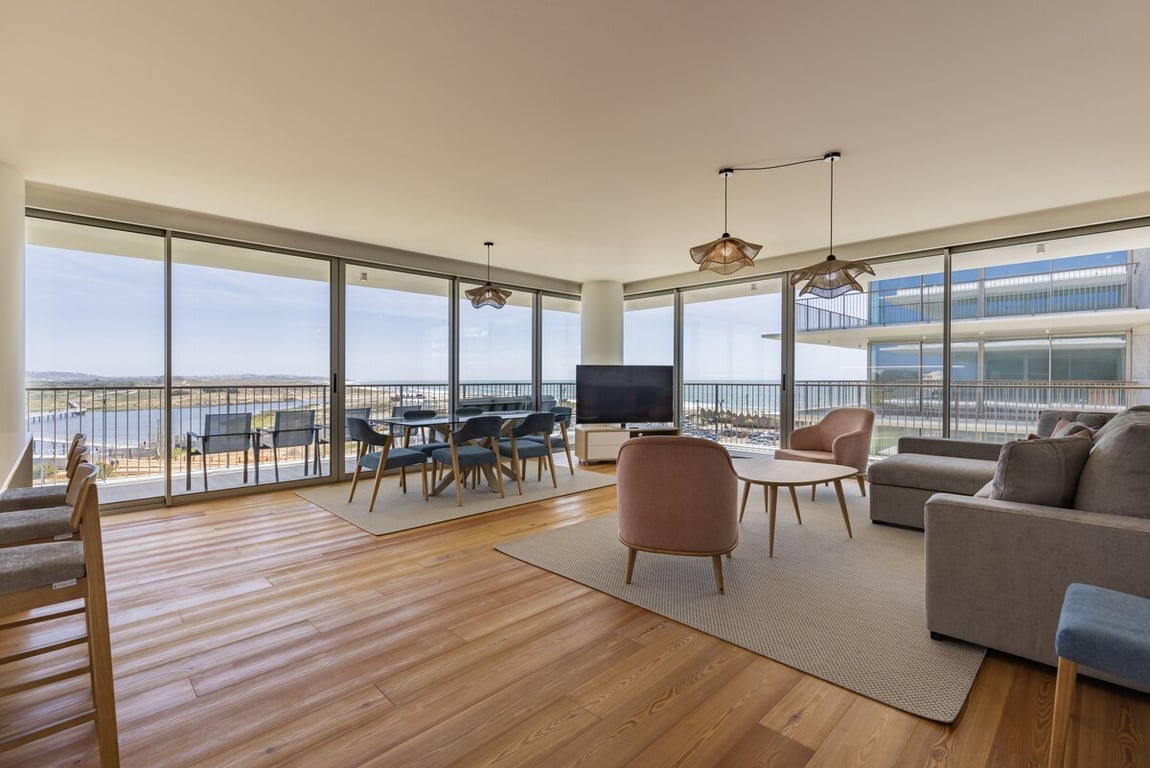 An elegant one-bedroom apartment, offering an exclusive experience and stunning views of Beach, the river, boardwalks, and lush gardens. With a modern and welcoming design, it's ideal for both relaxing holidays and remote work. A fully equipped kitchen ensures practicality for your meals. Free access to outdoor and indoor swimming pool and gym. Spa (upon reservation and additional cost). Walking distance to restaurants, shops, pastry shops, and supermarkets. Private parking space provided.