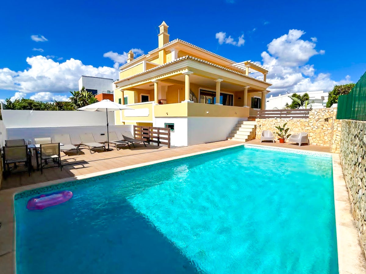 HOUSE WITH SPECTACULAR SEA VIEWS - SAFE & PEACEFUL AREA. Big swimming pool & child friendly pool. Wireless internet. Short walk to some of Algarves most beautiful beaches. Two bedrooms with private bathrooms, living room, kitchen, wc, roof terrace and private garden (NEW KITCHEN, NEW BATHROOMS). Short walk to the old fishing town Armação de Pêra with shops, restaurants, cafés. Enjoy the amazing cliff trail overlooking the world famous Algarve beaches & sand cliff formations. Your dream vacation!