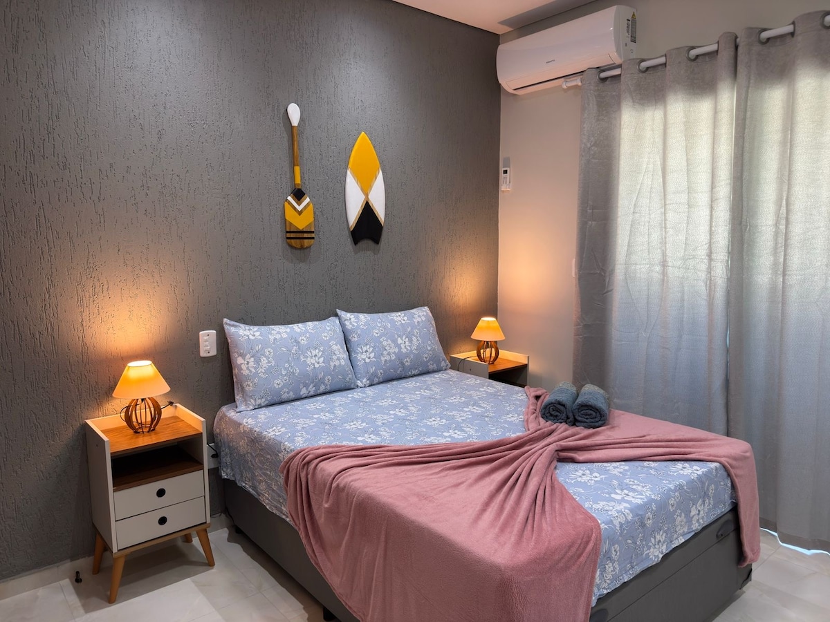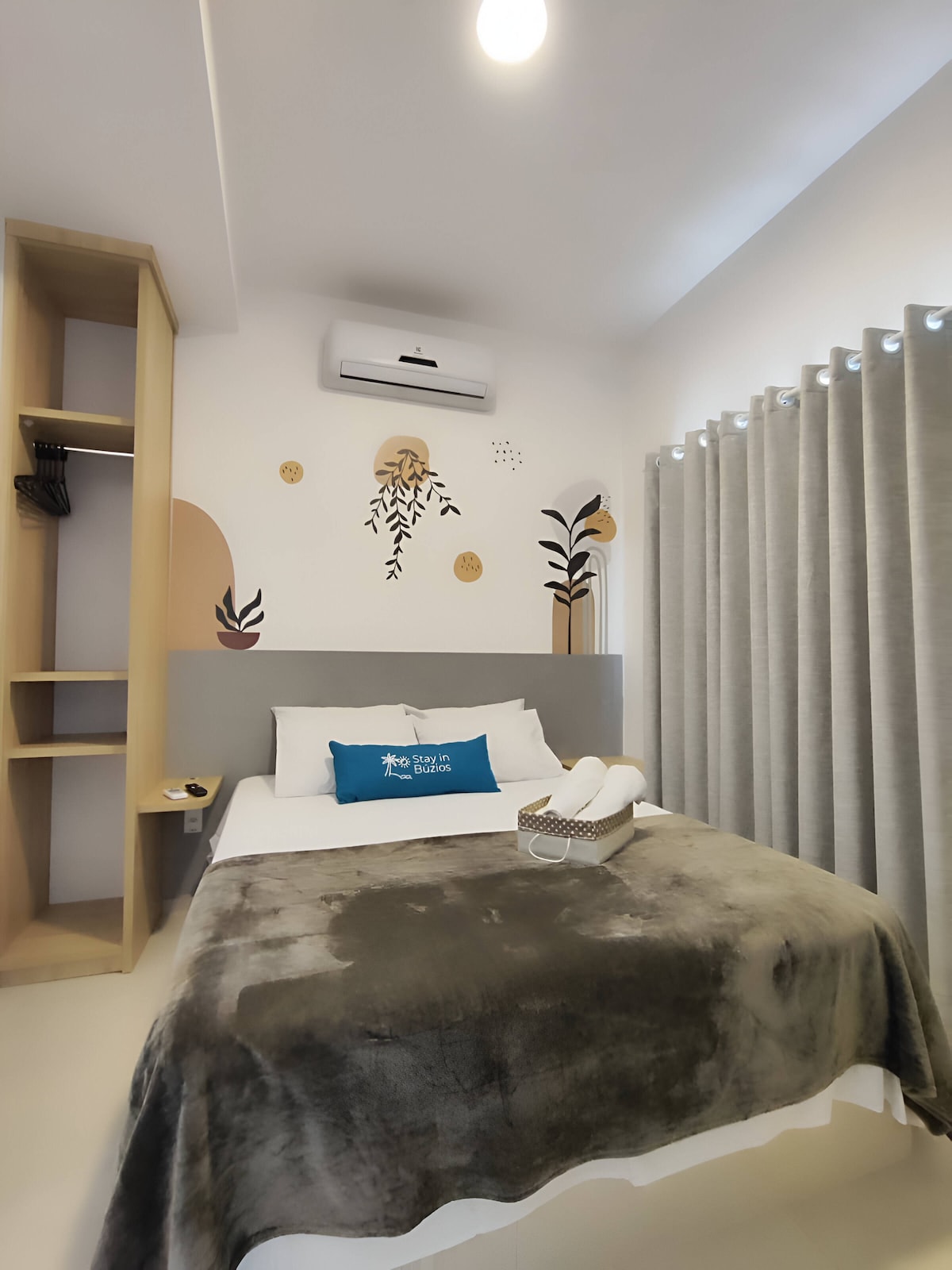 This is a beautiful apartament in Búzios with one independent suite (double bed, air conditioner), room with a sofa/daybed, TV with NetFlix and YouTube and air conditioner, a kitchen with all utensils, and a comoom bath. The location is amazing, it's close from Rua das Pedras, Orla Bardot and beaches.
