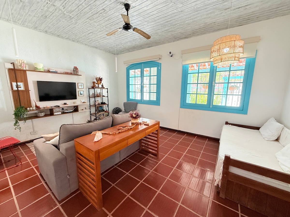Linda Casa com 2 quartos com aparelhos de ar condicionado. Um quarto de casal com vista incrível para a Lagoa, um quarto de solteiro com duas camas individuais adaptáveis para se tornarem uma cama de casal, varanda pergolado, rede e churrasqueira, banheiro com chuveiro elétrico com água quente e fria, cozinha completa integrada com a sala de jantar e de estar, lavanderia e uma localização privilegiada, a 30 segundos caminhando até a Praia do Canto e a alguns passos da famosa Rua das Pedras.
