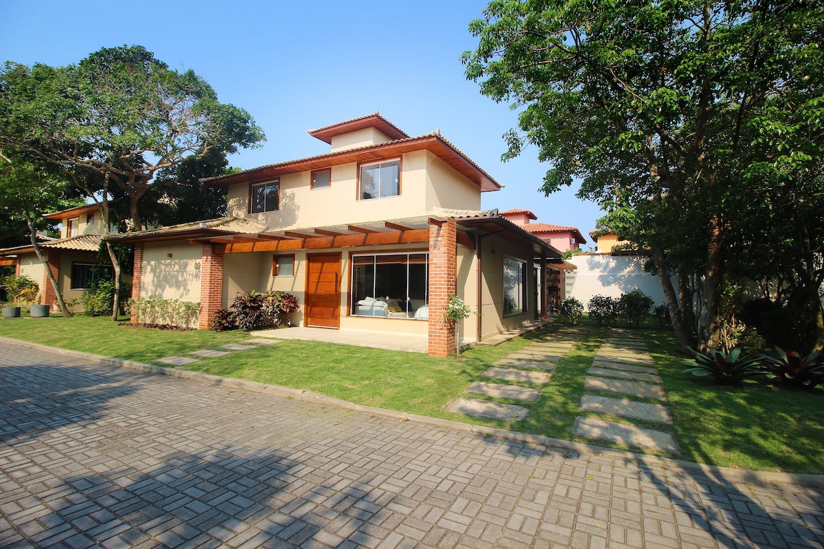 • Facing the lake and surrounded by nature, this charming house in a family-friendly condo is perfect for families and small groups. • With 3 suites, air conditioning and Smart TVs in all rooms, plus a private pool, hot tub, and gourmet area, it offers comfort, tranquility, and charm in every detail. • Thoughtfully decorated spaces, safety, and easy access to beaches and the town center. • Enjoy unforgettable days in Búzios!