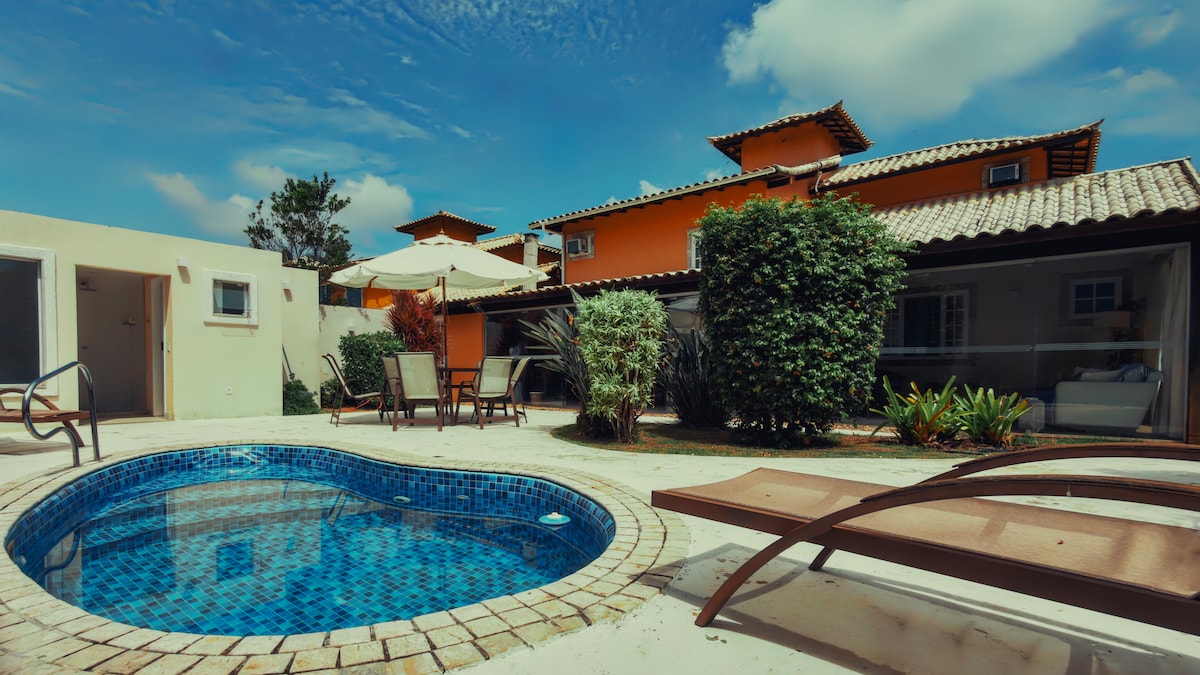 • Charming house with a private pool in a condominium surrounded by nature, ideal for families and small groups. • It has 3 comfortable suites with air conditioning and Smart TVs in the bedrooms. The common areas do not have air conditioning. • Fully equipped gourmet area and spacious environments, perfect for relaxing and enjoying special moments. • A cozy, safe space with easy access to the beaches and downtown Búzios.