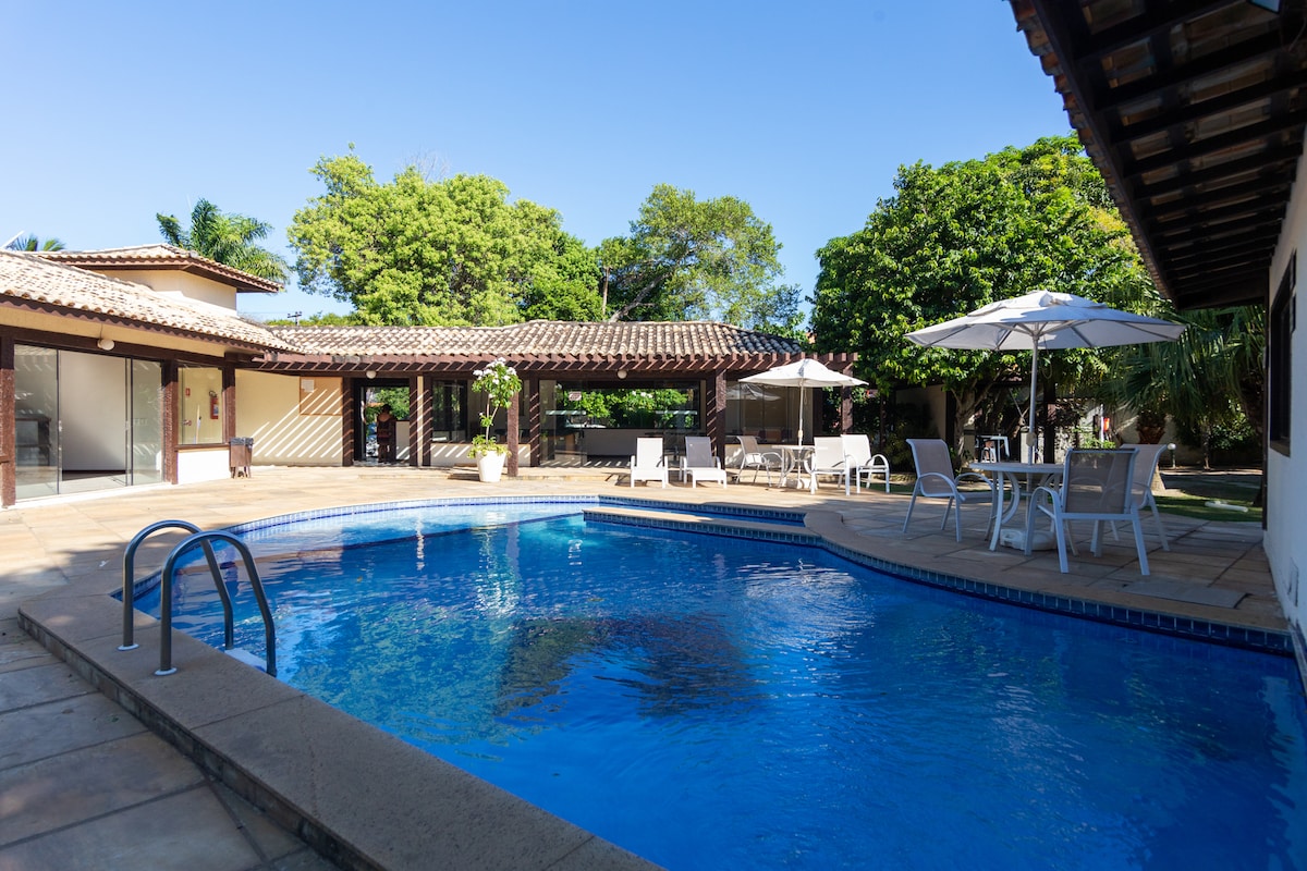 Relax with the whole family in this peaceful accommodation. The house is located in a condominium called Buzios Resort. The condominium has a swimming pool, saunas, practically private and quiet beach. The house has 3 bedrooms, two of which are suites. It has 3 bathrooms, barbecue, refrigerator, TV, microwave, fan, Wi-Fi and a space for anyone to play without worrying. Close to supermarket and pharmacy. It has 24 hour security and a view paradise to enjoy.