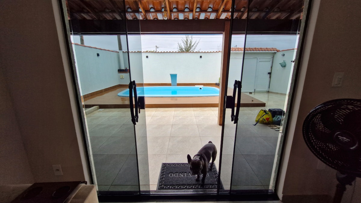 A casa é perfeita para quem deseja relaxar em um ambiente aconchegante e curtir em família ou com amigos. Suítes com ar-condicionado, ambientes integrados, cozinha equipada, sala de TV, área externa com chuveirão, ombrelone, churrasqueira portátil, mesa e sofás. Uma Prancha de Stand UP, algumas cadeiras de praia, 2 barracas de sol para garantir a diversão na praia. A casa fica a 3 min caminhando da Praia de Manguinhos. Perto de supermercados e restaurantes.