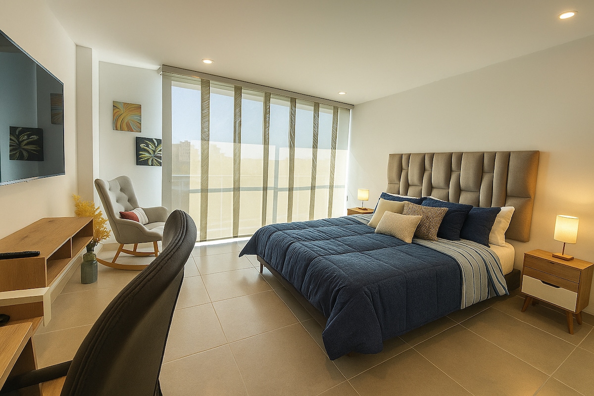 Disfruta de la exquisitez en nuestro hermoso departamento, donde cada detalle ha sido cuidadosamente seleccionado para garantizar tu comodidad. Equipado con todo lo necesario, te aseguramos días de confort inigualable. La ubicación privilegiada te brinda acceso a supermercados, restaurantes, spa,salones de belleza, gimnasios, universidades, clínicas, hospitales y centros comerciales. Te damos la bienvenida a tu refugio perfecto para el descanso. ¡Reserva ahora y vive una experiencia única!