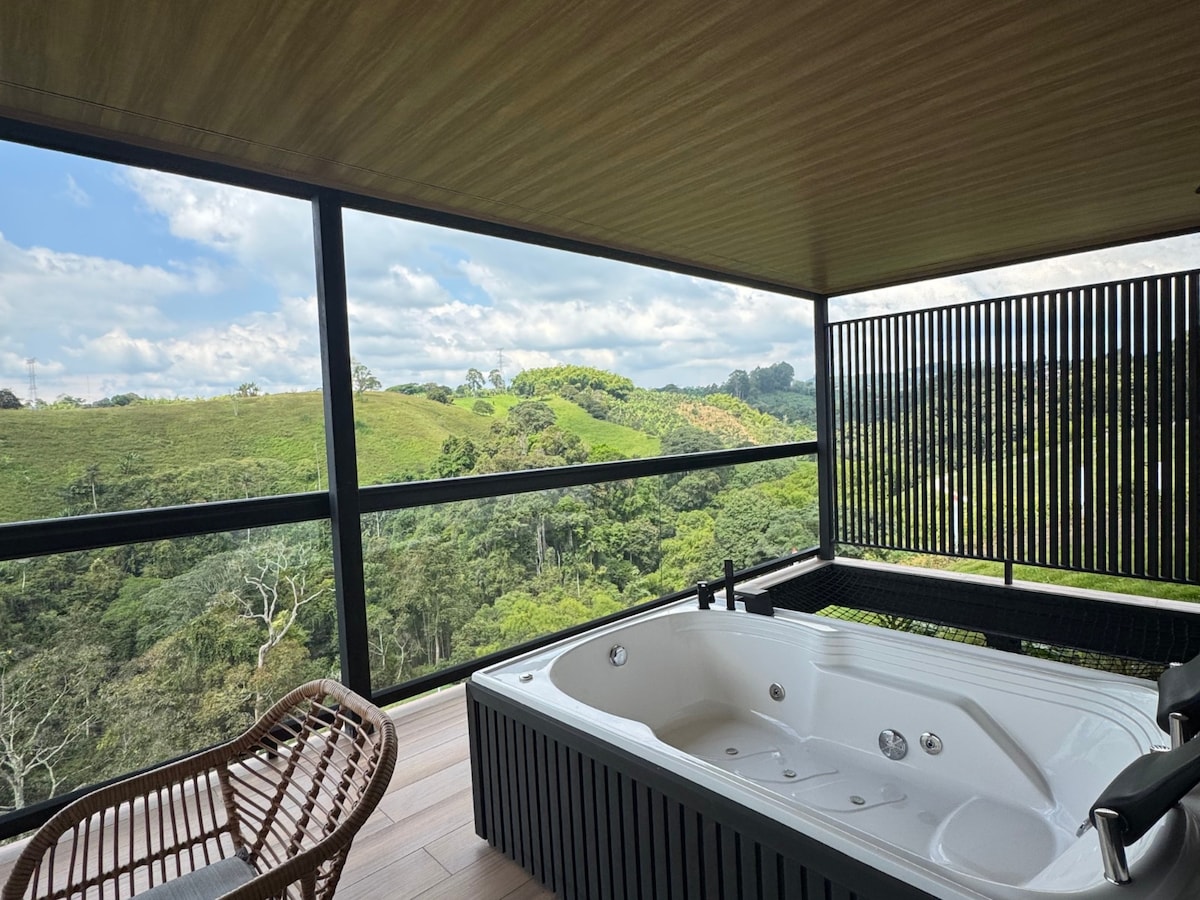 Disconnect from your worries in this spacious and serene space. Coffee farm where you can connect your mind and body with nature, enjoy a pleasant climate and beautiful sunsets. Perfect Place To rest and disconnect from everyday life you will be able to spend unforgettable moments You will enjoy the birds singing, it is ideal for couples - It has a transparent Dome Glamping, Jacuzzi, outdoor shower, Breakfast 🍳 Included.