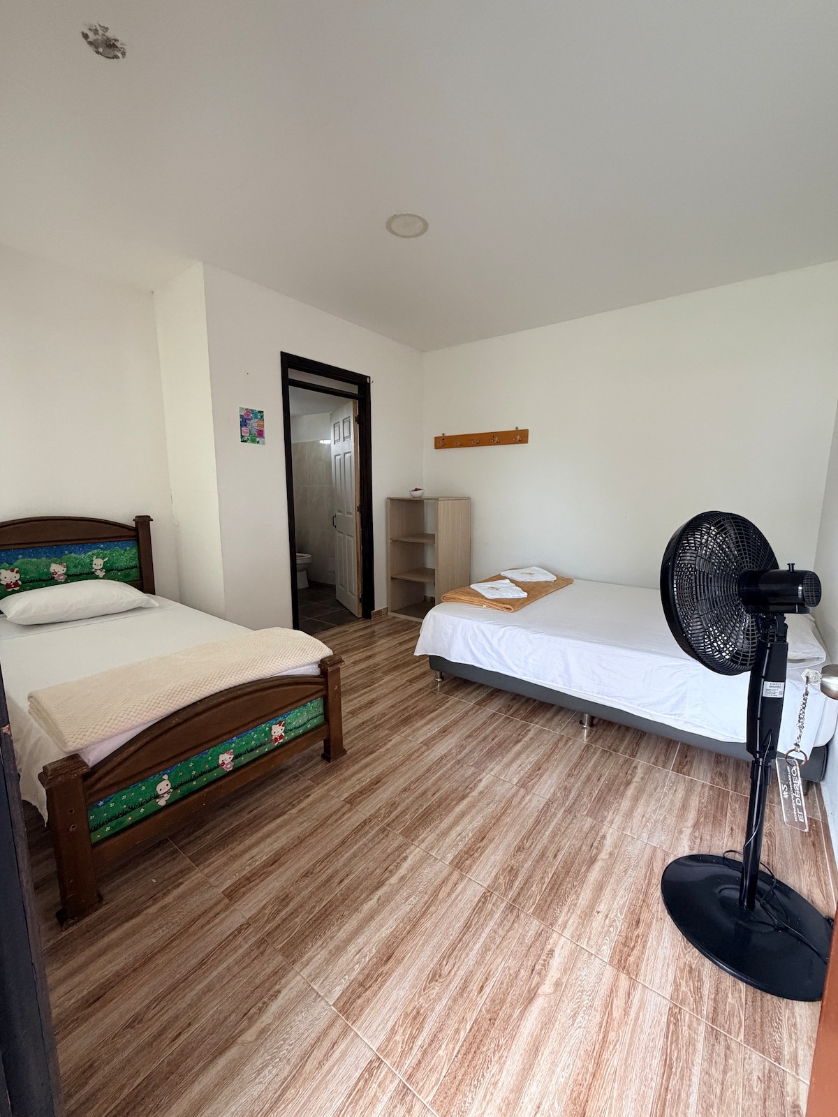 Relájate con toda la familia en este alojamiento adaptado a tus necesidades, ubicado cerca a los sitios turísticos emblemáticos del paisaje cultural cafetero, además se encuentra cerca de centros comerciales, terminal de transporte, aeropuerto y amplia variedad de sitios de interés. *3 camas dobles *Sala y comedor amplios, cuenta con cómodo sofá y televisor *Zona de lavado y secado *Cocina equipada con nevera y utensilios para diversas preparaciones *Ducha eléctrica *Parqueadero privado