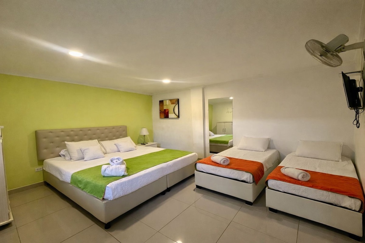 Disfruta de una estadía cómoda en nuestras habitaciones para todo tipo de viajeros: Simple: Ideal para viajeros solitarios. Doble: Perfecta para parejas o amigos. Triple: Para familias pequeñas o grupos. Múltiple: Espacio para familias grandes o grupos. Precio: $60,000 COP por persona/noche, desayuno incluido. 🥐