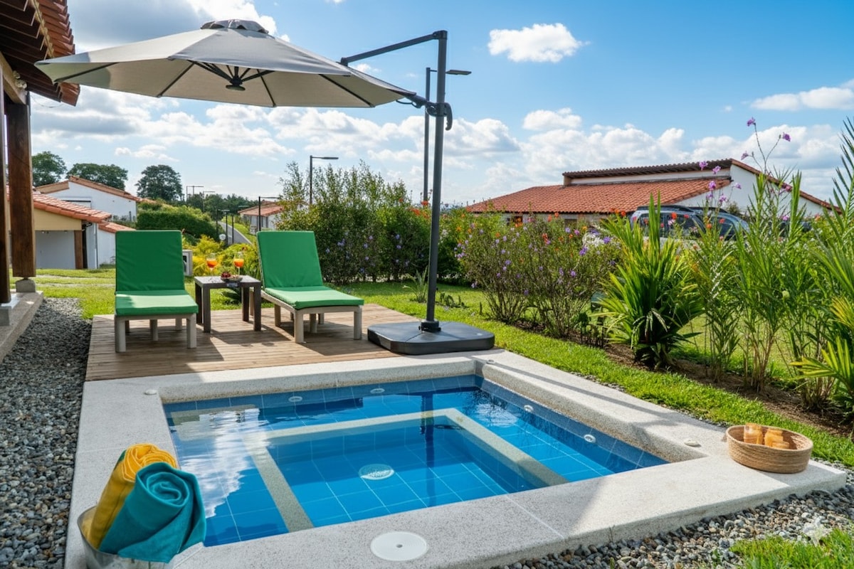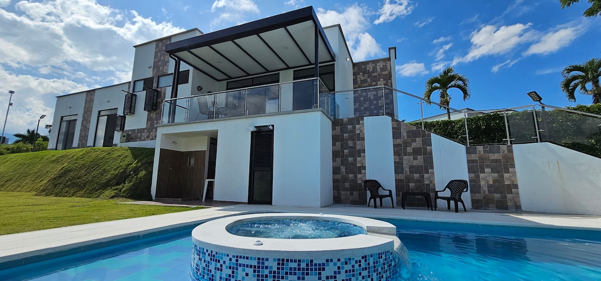 Con Viagi Properties tu tarifa de Airbnb es $0.00 Vive una experiencia inolvidable en tu villa con piscina privada en el Eje Cafetero, ideal para descansar y disfrutar la naturaleza. Disfruta de: 🧼 Limpieza profesional 🏊 Piscina privada rodeada de zonas verdes 🎢 Cercanía a los principales parques turísticos 🍽️ Cocina equipada y espacios amplios 🚗 Acceso fácil y parqueadero privado 🌿 Privacidad total y entorno natural ¡Haz tu reserva y vive el Eje Cafetero como nunca antes!