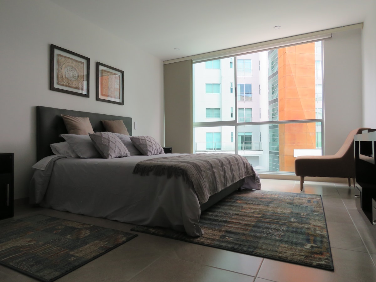 ¡Vive una experiencia de lujo en el norte de la ciudad! Disfruta de un apartamento de ensueño con: - Habitación principal con cama doble y baño privado con agua caliente - Sala con sofá cama doble de alto confort y vista a área natural, perfecta para relajarte - Cocina equipada full - Parqueadero privado y seguridad las 24 horas para tu tranquilidad Ubicado en una zona exclusiva, comercios y restaurantes de alto nivel gastronómico *Se requieren los datos de los huéspedes previo a la llegada