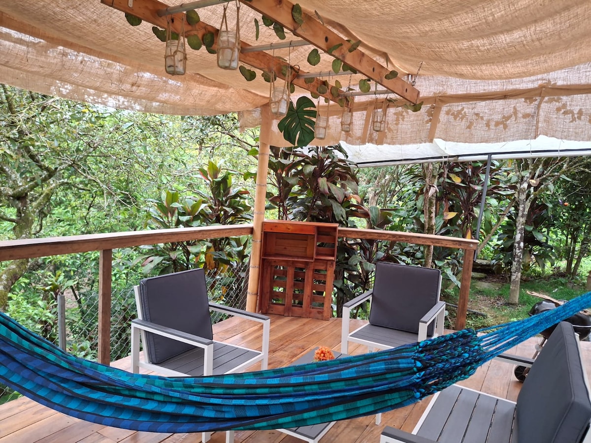 Vive una noche mágica en nuestro Glamping Luxury inmerso en un bosque de bambú. Estamos ubicados en zona rural de Salento, rodeados de ríos y montañas. Nuestro alojamiento combina el estilo contemporáneo con lo rústico y lo natural. Aquí disfrutarás de un jacuzzi privado, una malla catamarán (Hammock net) para relajarte, una cálida fogata de bioetanol, una ducha a cielo abierto, bicicletas de montaña y muchas otras comodidades que harán de tu estancia una experiencia realmente inolvidable.