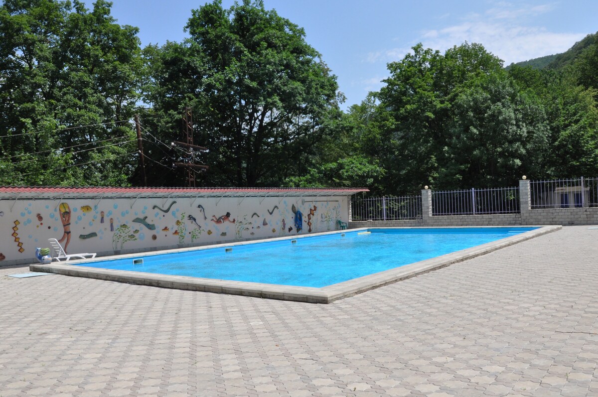 Комната в частном 3 этажном особняке на подножии горы в центре города Алаверди, на улице Jravazana 73 . На каждом этаже общая прихожая, 4-гостиная, 3-кухня, 7-ванная комната и 8 - спальные комнаты. Дом большой и просторный есть место для паркинга. Завтрак бесплатно. Можем предоставить ужин и обед платно так же трансфер, хозяйка дома Наринэ повар— универсал .