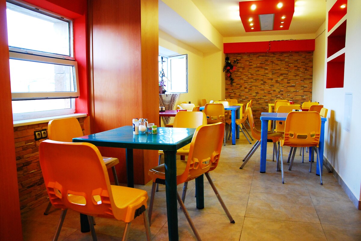 15 rooms of double beds, with private bathrooms for each. It's all you need: room, breakfast, taxi, free airport pickup, tours, without price rising luxuries. So You rent a room in the price of a bed. See our guests' opinions on different travel websites.