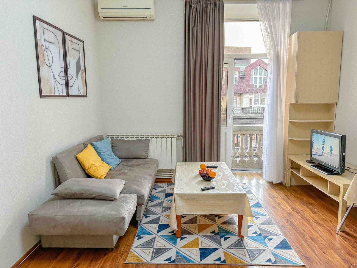 Very bright and happy apartment in the center of Yerevan, right next to the State University. Walking distance to almost anything in the center. Quiet yard with kids playground and football (soccer) court. Has everything needed for short or long-term stay, including cable and espresso machine.