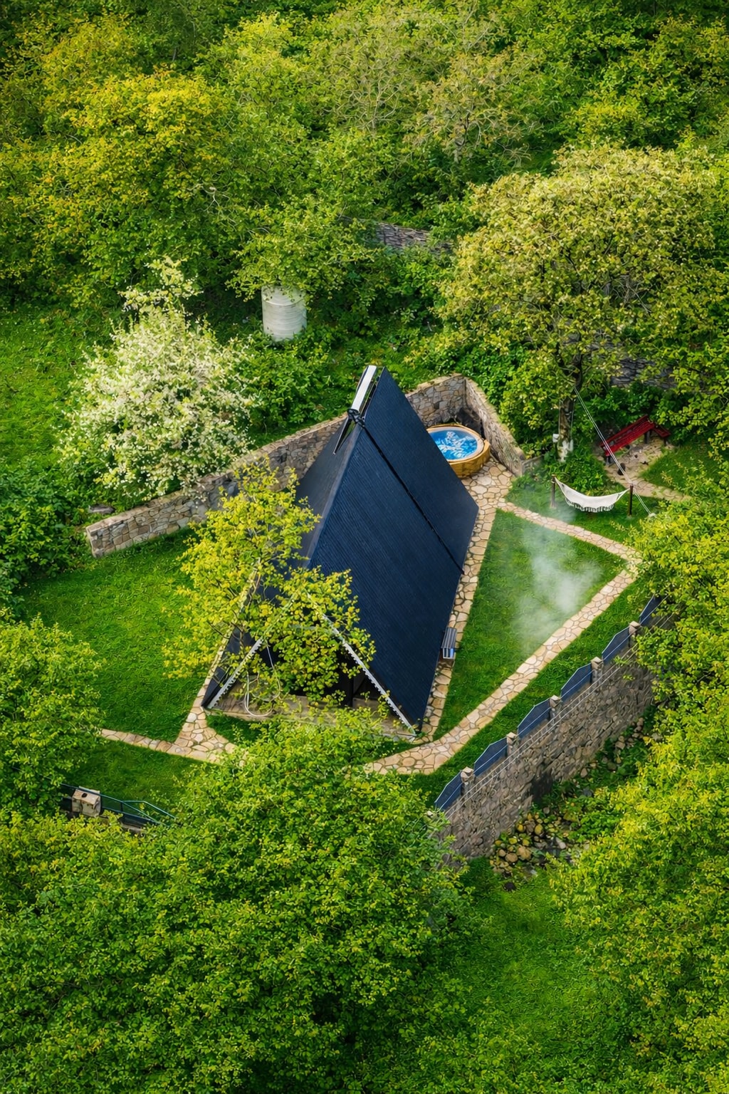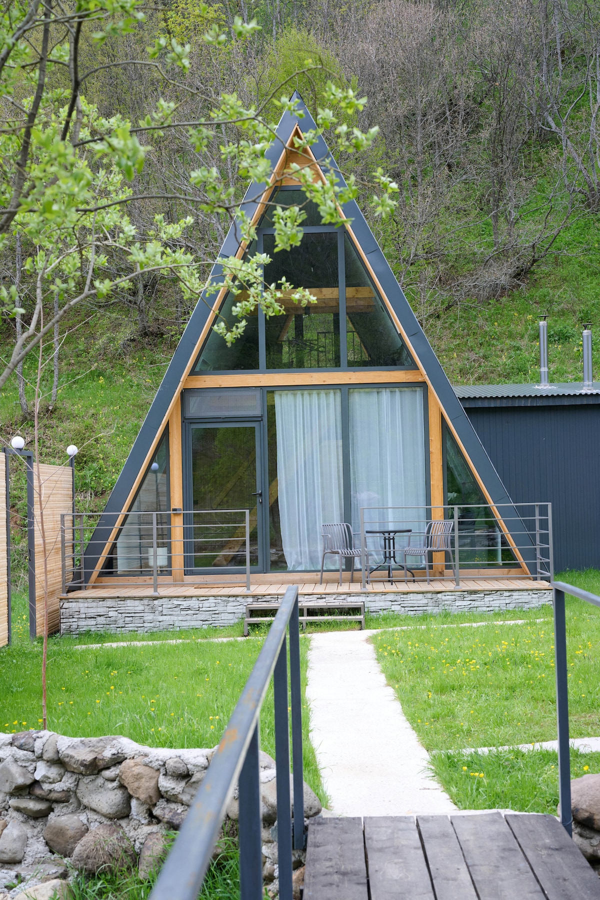 Уютный дом, спрятанный среди зелени. Идеальное место для отдыха вдали от городской суеты. Дом оснащён всем необходимым: просторная гостиная, спальня на втором уровне, зона для барбекю, освещённая терраса для вечернего отдыха и отапливаемое джакузи под открытым небом. Лёгкий, естественный шум реки служит изысканным природным фоном, усиливая ощущение приватности и релакса. Идеально подходит для пар, семей и всех, кто ищет вдохновение и покой в сердце природы.