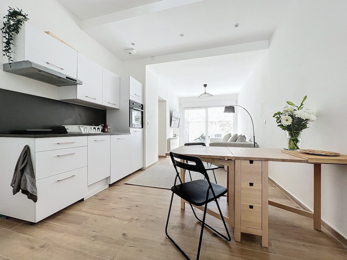 -20% à la semaine -45% au mois L'immeuble centenaire a été totalement rénové en avril 2023. Cet appartement de 25m² a été entièrement repensé par une architecte d’intérieur, offrant tout le confort moderne dans le charme de l'ancien. Idéal pour les touristes, professionnels en déplacement, stagiaires, télétravailleurs, amoureux cherchant un nid douillet ou comme point de chute (séparation, ...). Pour info: l’escalier peut paraître un peu raide.