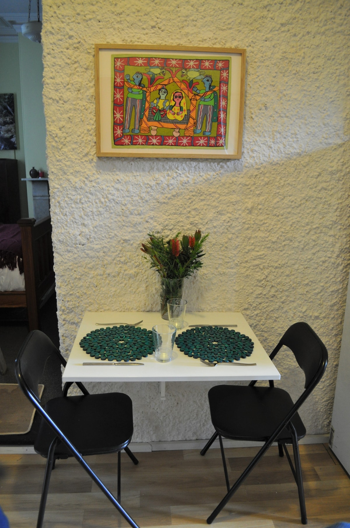 Barking Dog Gallery is opposite The Top Pub and New England Brewery on the main road in Uralla. The self catering bedsit is attached to the back of the house down the driveway behind Barking Dog Galley and the pottery workshop. The bedsit features skylights, double glazing, antique and modern furniture, a queen size bed and a well equiped kitchen. Tea, coffee and milk is supplied. Just walk across the road for a great meal at The Top Pub. Check in after 3pm. Check out 10am.