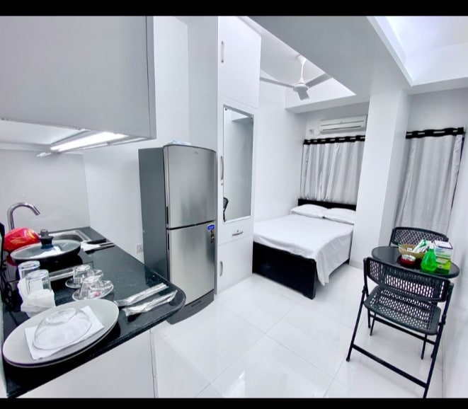 This cozy 4th-floor home combines comfort and convenience with a bright bedroom, wall cabinet, seating area with TV, prayer room, workstation, and dining space. The kitchen includes a fridge, oven, and HI-TECH water filter for easy living. Essentials like geyser, Wi-Fi, and AC in both bedroom & living area ensure comfort. Located next to Gulshan Aarong outlet and walking distance to food shops, it’s perfect for quiet reading, working from home, or simply relaxing for maximum 2 people.