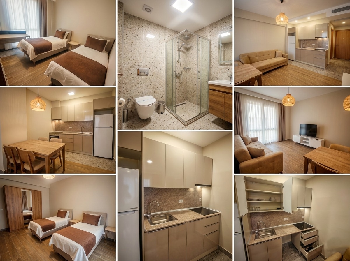 Dairelerimiz, şehir dışından gelen misafirler için kısa ve uzun süreli konaklamaya uygun olacak şekilde düzenlenmiştir. Kısa veya uzun konaklama isteyen misafirlerimiz için her dairede tam donanımlı mutfak, yüksek hızlı internet ve iki ayrı yatak düzeni bulunmakta olup, temiz, düzenli ve konforlu bir kullanım sunar. Gece saatlerinde ise self check-in imkânı sağlanmaktadır. Tesisimiz Hadımköy ana caddesi üzerinde bulunmakta olup bina ya ait ücretsiz otopark bulunmaktadır.
