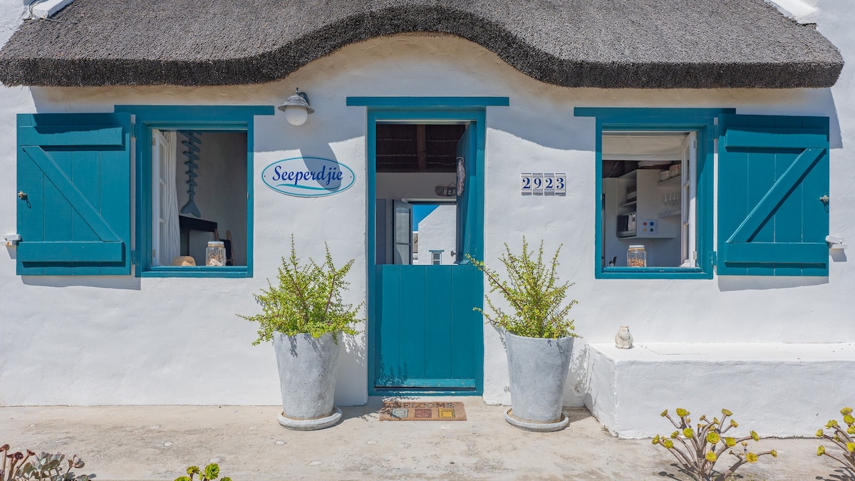A rustic beachfront cottage just a few steps from the rock and tidal pools. Enjoy beautiful, uninterrupted sea views and sunsets over the ocean with the famous lighthouse in the background. Agulhas borders the National Park with long stretches of pathways and wooden walkways to Cape Agulhas Lighthouse and the most Southern tip of Africa. Fully equipped open plan kitchen, dining and living area. Mobile- as well as sheltered braai area. Free uncapped wifi