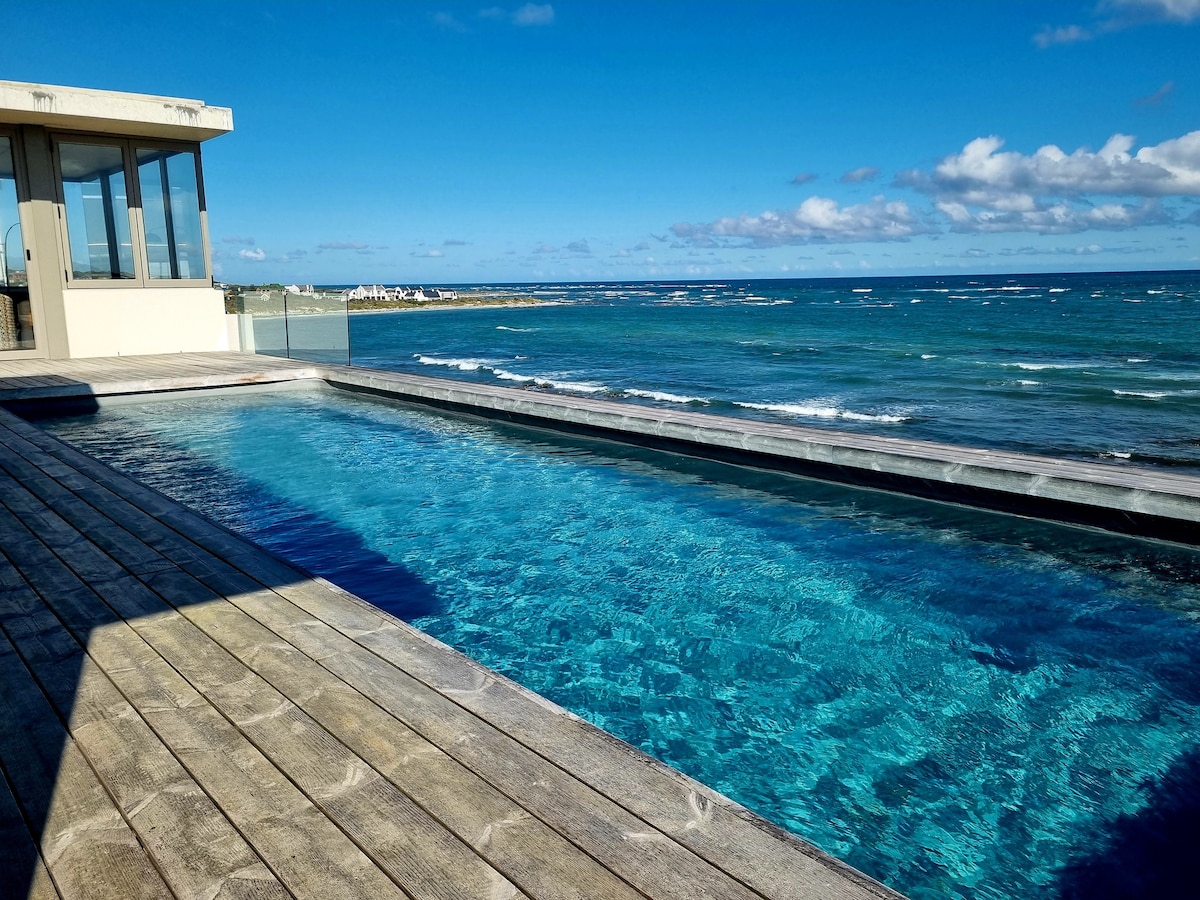 Kick back and relax in this calm, stylish space.The Ocean in front of you, untouched nature all around. Relax at the pool while overlooking the Ocean and feel free.There is one bedroom at groundlevel and the rest upstairs which makes it perfect for all ages. The large open plan living let you make food while overlooking the pool and watching tv. There is a big lawn for playing with the kids. Rooms are spacious and there is a bath or a Shower depending on your preference. All rooms have seaview.