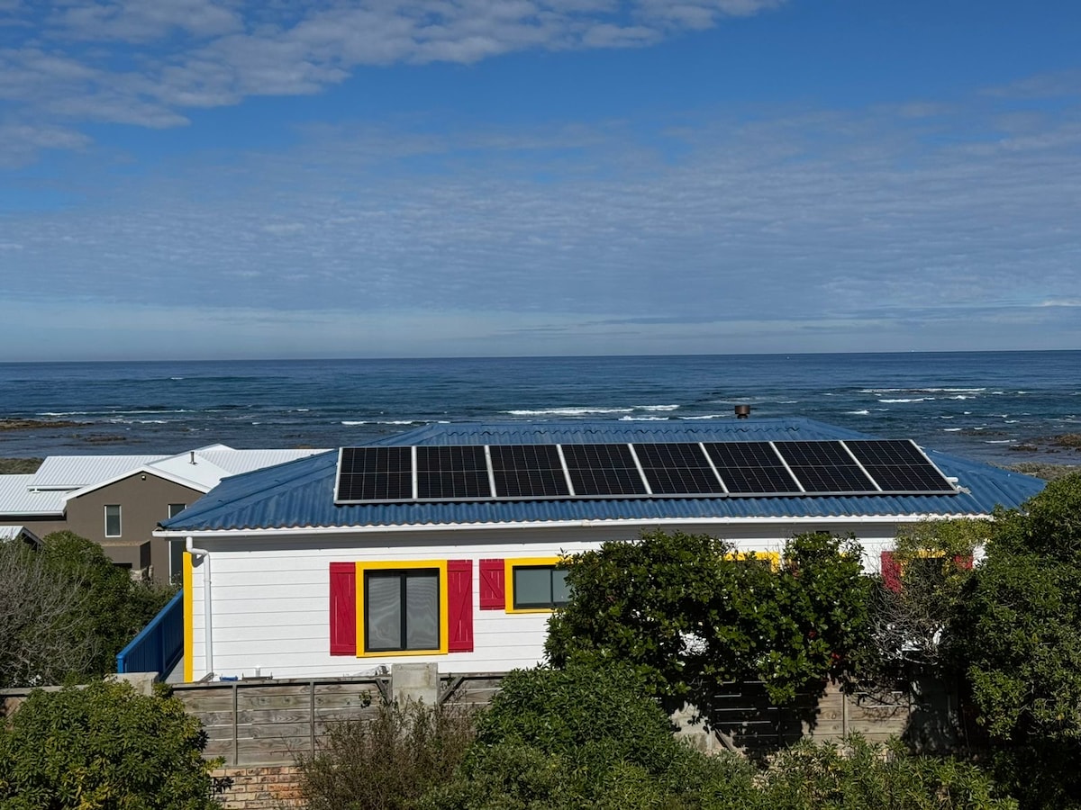 Enjoy uninterrupted ocean views from this charming solar-powered cottage with high-speed fiber WiFi. • Spacious patio with a brand-new lounge • 3 en-suite bedrooms—2 with stunning ocean views and the soothing sound of waves • Cozy fireplace, Smart TV (DSTV), and WiFi • Fully equipped kitchen, dishwasher, washing machine & dryer • Enclosed braai area • Just a 3-min walk to the beach & marine-filled rock pools.