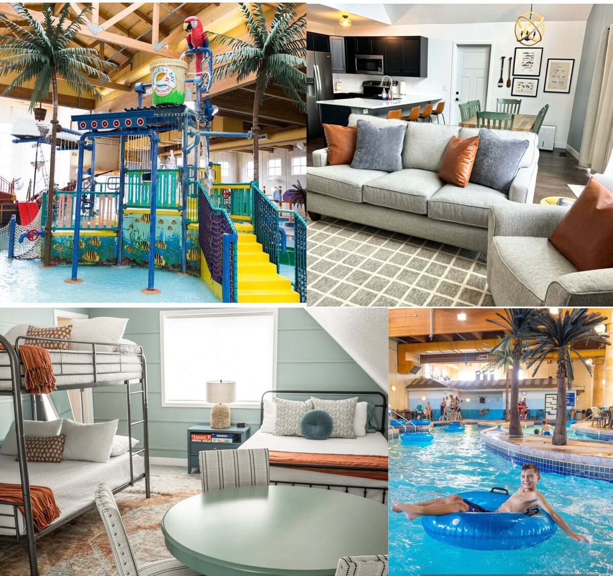Endless Summer is the ultimate kids cabin at Bridges Bay Resort and Waterpark. Our goal is to provide families with a comfortable and convenient place to gather and make new memories. Enjoy all of the amenities of Bridges Bay including 6 daily indoor/outdoor waterpark passes, arcade, zip line, fitness room and fishing ponds. On top of that our place has entertainment for all ages such as a giant connect 4, a putting green, bags game, kids fishing poles, board games, books, kids toys and more!
