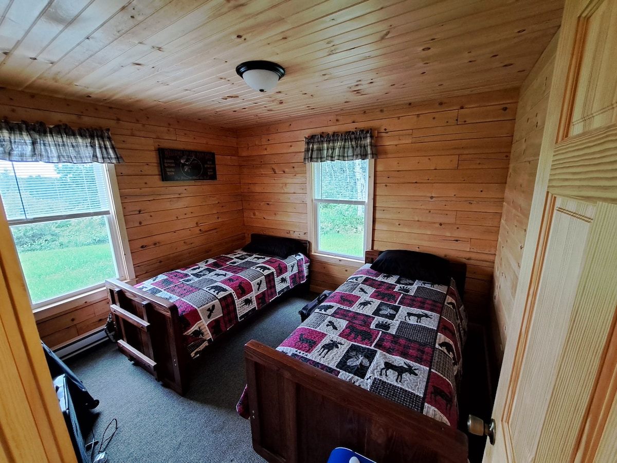 Relax with the family at this peaceful hideaway. The cabin overlooks the Aroostook River Valley near major access points to snowmobile and ATV trails and the North Maine Woods. The cabin is on top of the world, providing spectacular views of sunrises, sunsets, and countless stars on clear nights. Achieve a feeling of escape just minutes from town. The bedrooms sleep 6 (a queen, full, and two twins). The queen pullout sofa and pullout ottoman provide additional sleeping for 3.