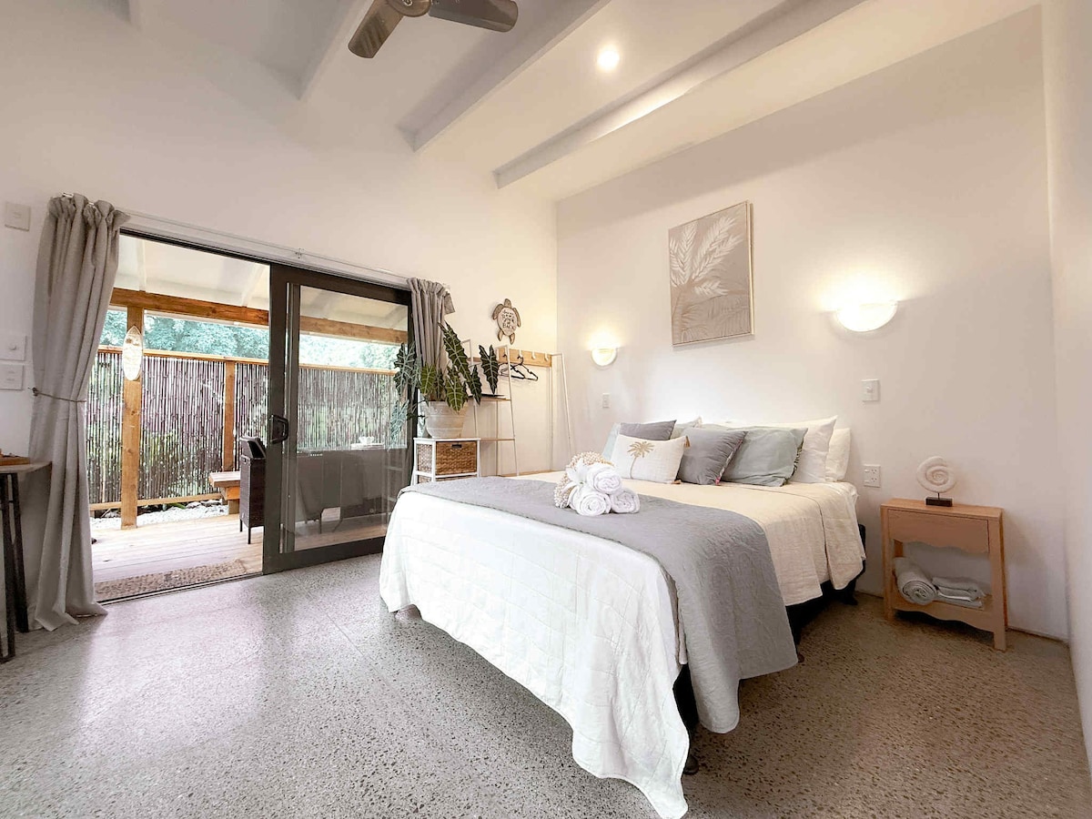 Kia Orāna & Welcome! We’re Dawn & Orlando, Studio Two is one of two private, self-contained units on our family property — surrounded by tropical greenery, filled with birdsong, and just minutes from the beach, town, and local cafés. Whether you’re here to rest, explore, or simply reset, you’ll find everything you need to feel right at home.