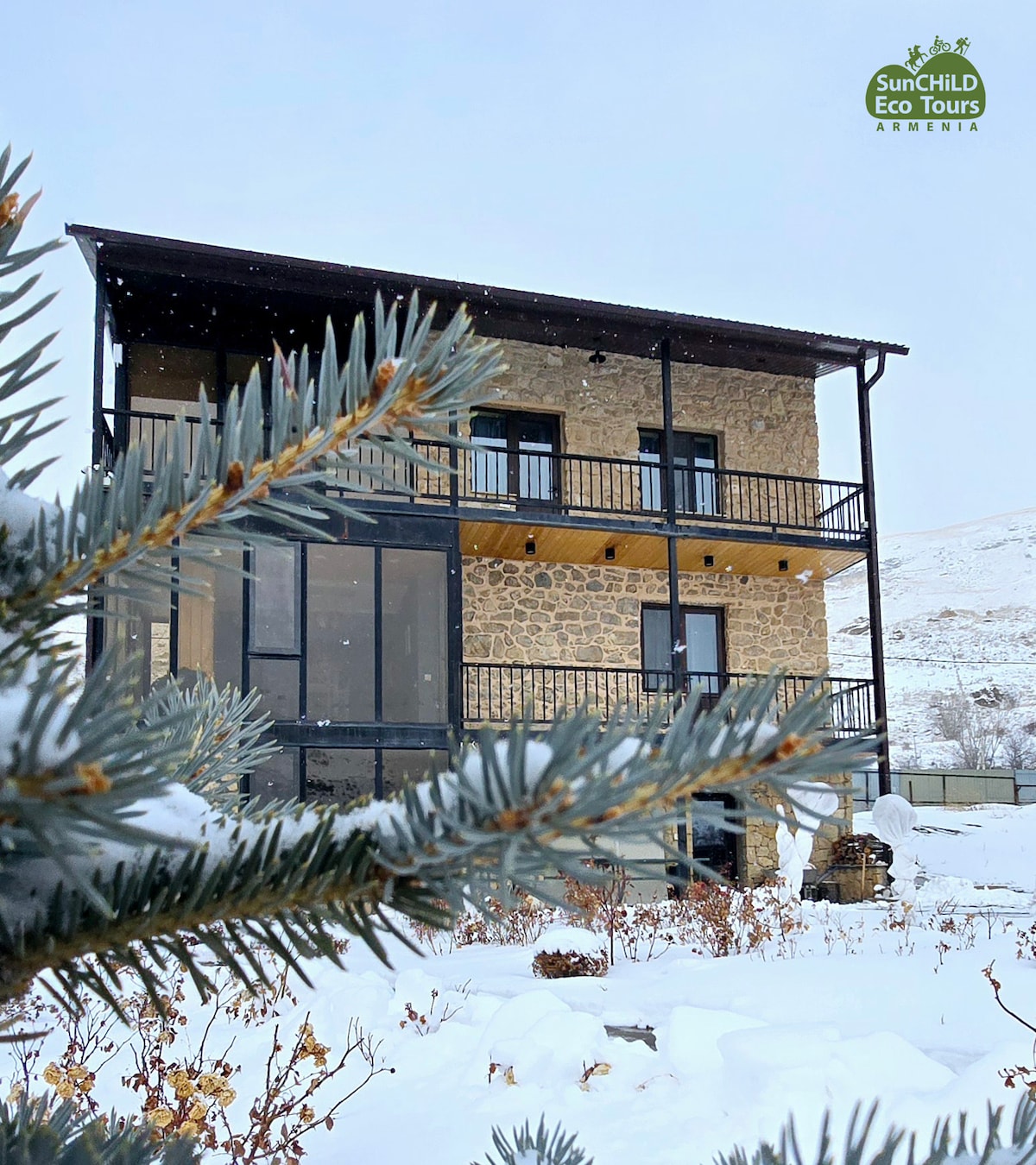 Nestled in the heart of untamed wilderness, The Gnishik Eco Lodge promises an escape like no other, where guests are invited to immerse themselves in nature's embrace and disconnect from the noise of the outside world. The house is equipped with all the amenities for a comfortable stay: lounge area, fully equipped modern kitchen, living room with a sweeping panoramic view of the Gnishik canyon and comfortable sleeping rooms with balconies, with most stunning views of the mountains.