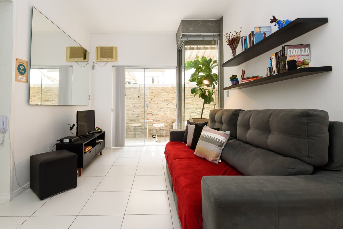 Charming and silent 25m2 studio, fully equipped, with high standard kitchen, bathroom and bedroom, and acoustic window with a 95% reduction of external noise. The studio is fully intelligent and responsive to voice commands (TV, sound, temperature and lighting). Located in the heart of Copacabana beach, our space is also just a few minutes walk from Ipanema beach, supermarkets, subway and a multitude of bars and restaurants, in the best of Rio style!