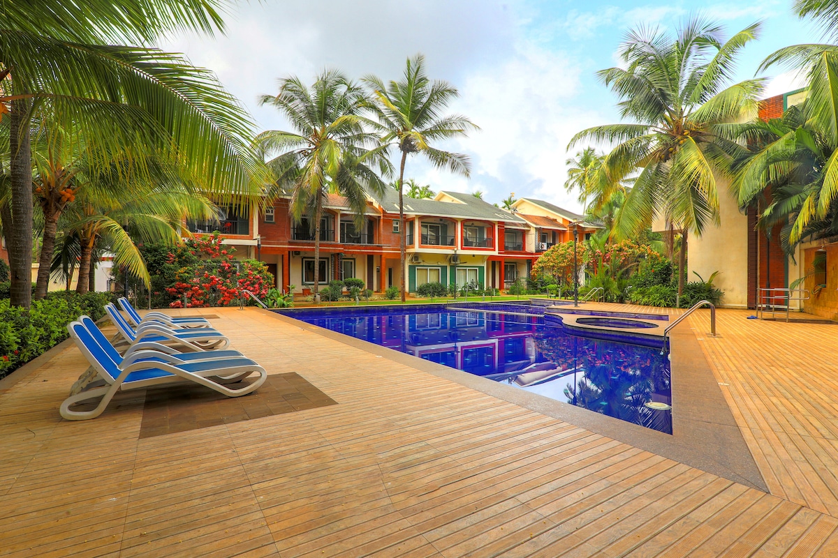 Brand New Property with great views and ambiance 2 Bhk Luxury Apartment 2 Big Room with Attached 2 Bathrooms 2 Big Balconies,Elevators 1 Big ac Hall with LED TV,Dining Table,Sofa,Kitchen,Oven Wifi washing machine Battery power backup Swimming pool separate kids Pool,Club House,Gym, Kids Playing Area. Security gated and parking space 3-5 Minutes drive from Baga Beach 1 Km from Saturday Night Market 500 Mtrs from Club Cubana 5-7 Minutes Drive from Tito's Club 3.5 Km from Curlies Beach Club
