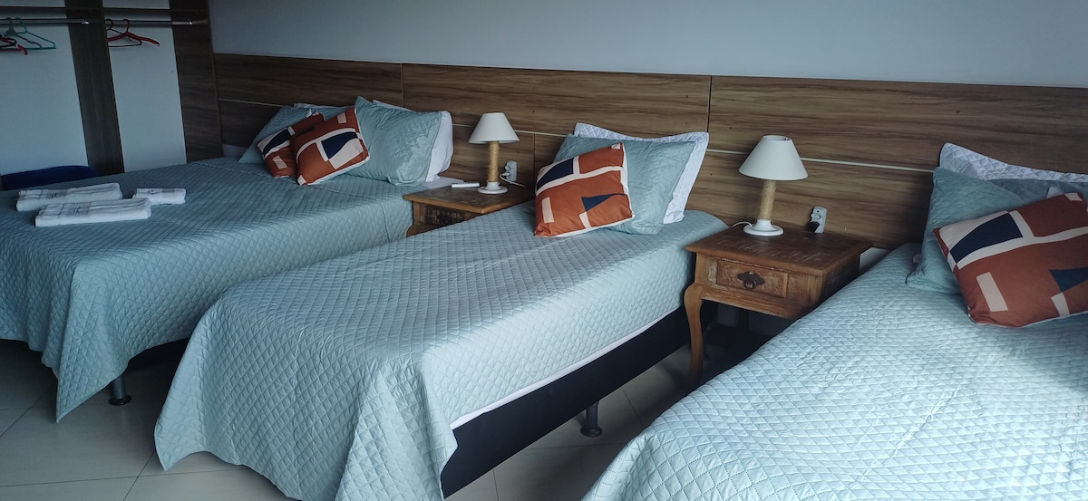 SUITE TURQUESA com vista para o mar. Cama posta ( roupas de cama ) frigobar, ar condicionado, tv . TEMOS SERVIÇOS ( a combinar) Decoração romântica Tábua de frios Bande de bebidas ( refrigerante, sucos e cerveja de sua preferência) Cestas com chocolates uber Rodoviárias e praias temos a big diária extensão do seu Check-out ate as 20hrs $ 100 reais